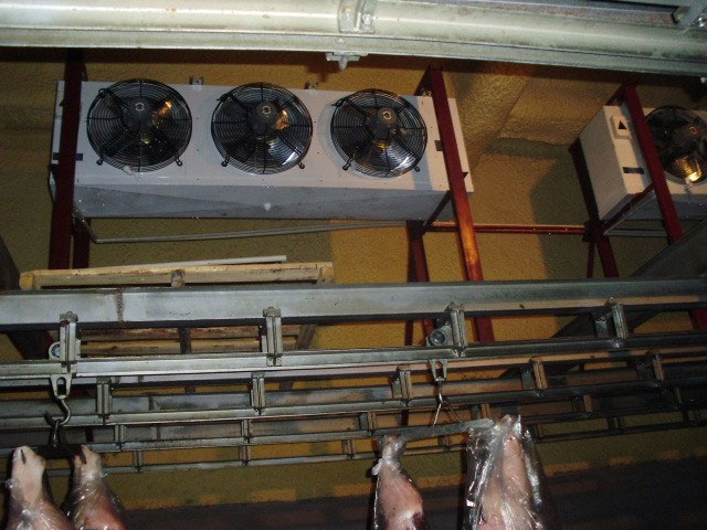 為了保證排酸效果和肉的排酸品質(zhì),排酸冷庫(kù)設(shè)計(jì)時(shí)要主要冷庫(kù)內(nèi)相對(duì)濕度的控制,如果排酸冷庫(kù)內(nèi)相對(duì)濕度較低的話(huà)會(huì)導(dǎo)致排酸過(guò)后肉的表皮過(guò)于干燥,從而影響肉的品質(zhì)。
